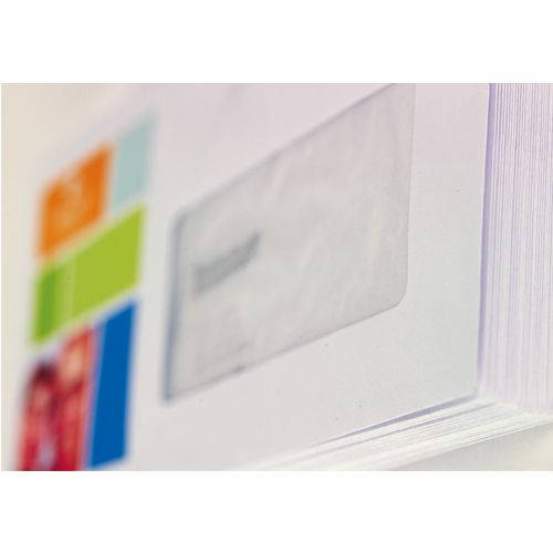 * 9x14cm 120g.m² extra blanc, fermeture patte gommée, impression recto noir ou quadri