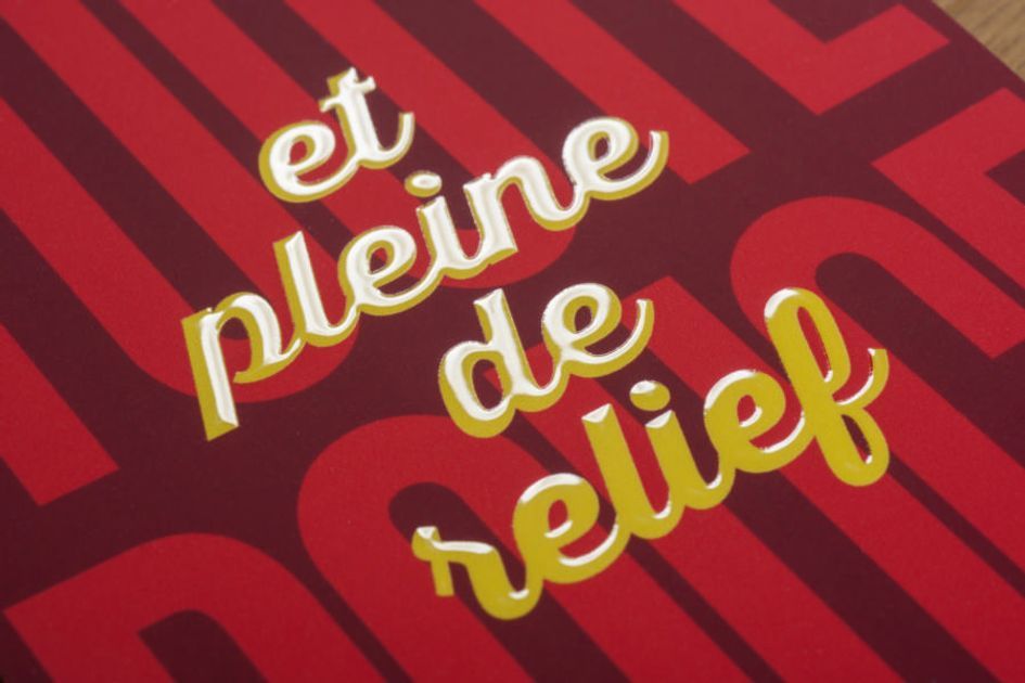 Le vernis sélectif 3D à un effet brillant en surépaisseur sur certaines zones définies : un téléphone, du texte, un logo...