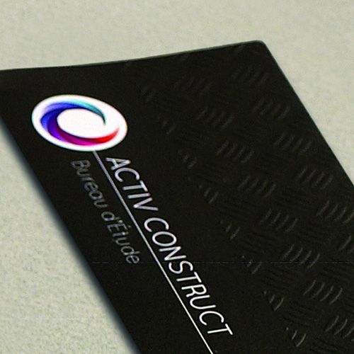 le gauffrage donne du relief sur certaines zones définies : un téléphone, du texte, un logo...