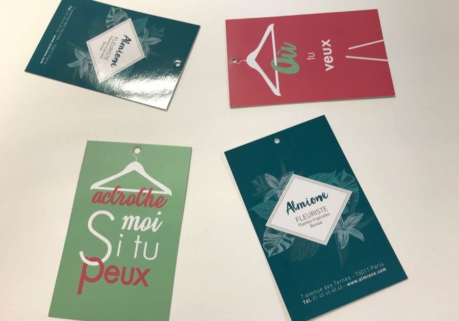 Cartes pour cadeaux, cartes d'information, cartes textile.