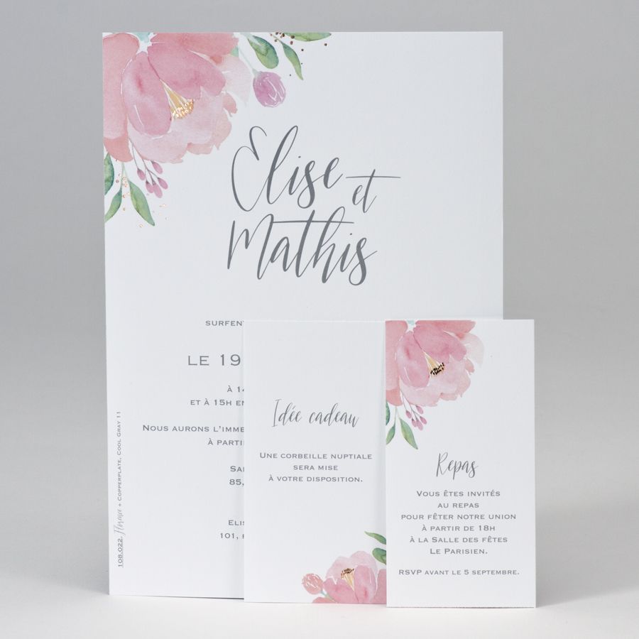souvent assorti au faire part, le menu de table permet de découvrir le repas de fête. Il peut aussi être conservé comme un souvenir.