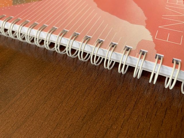 le tout fermé avec une spirale à anneaux en métal blanc.
