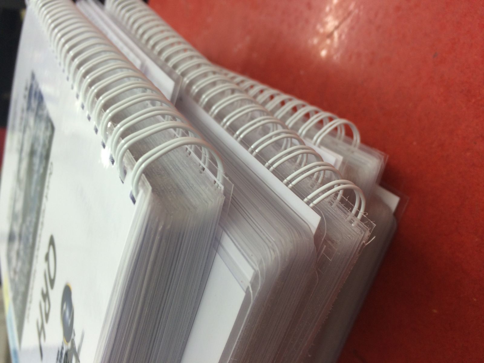 Dès que le dossier est relié, il n'est plus possible de ré-ouvrir la spirale métal, de changer ou d'ajouter éventuellement des pages.